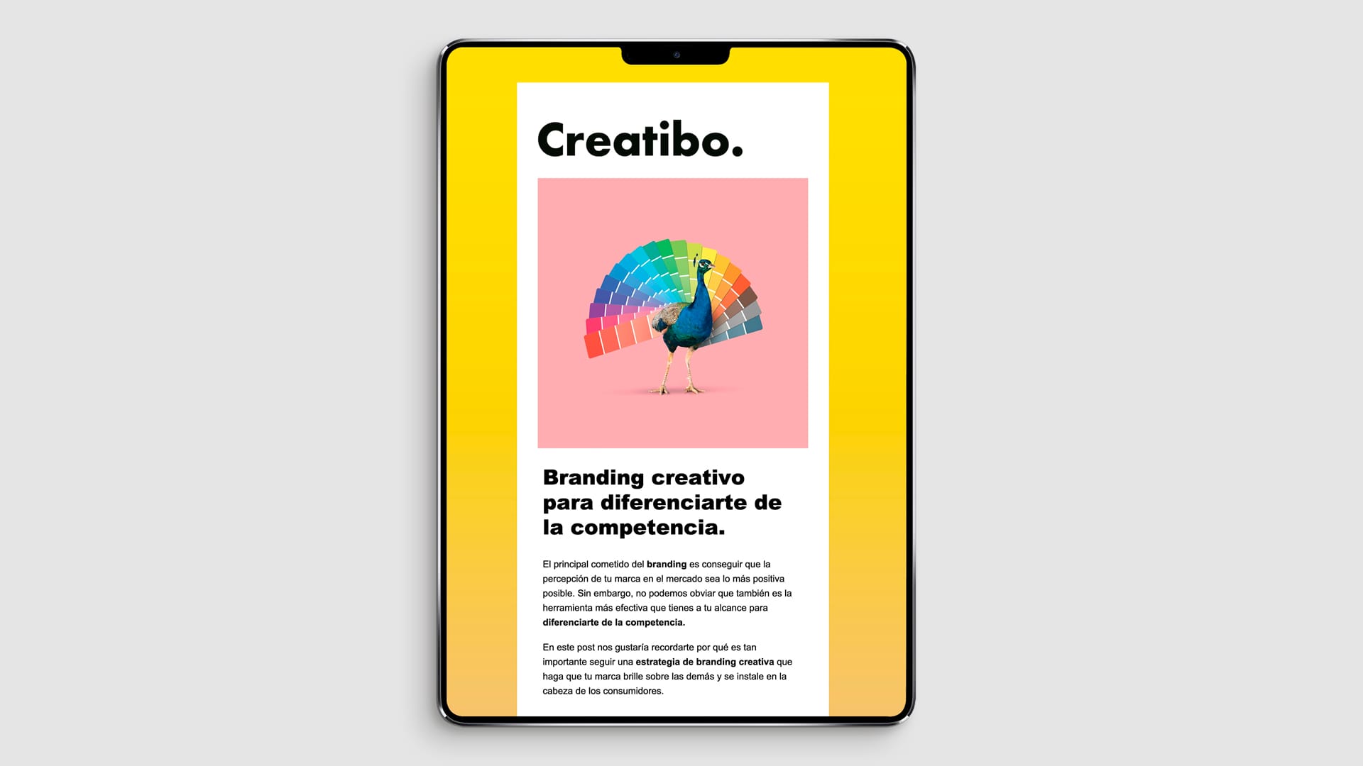 A través de nuestra newsletter, nuestros suscriptores reciben un mail semanal con el post que hayamos publicado esa semana en Creatibo. Las entradas están organizadas por categorías que se corresponden con nuestros servicios (publicidad, branding, diseño y desarrollo web, planificación de medios, estrategia digital, eventos y experiencias, trade marketing y contenidos).