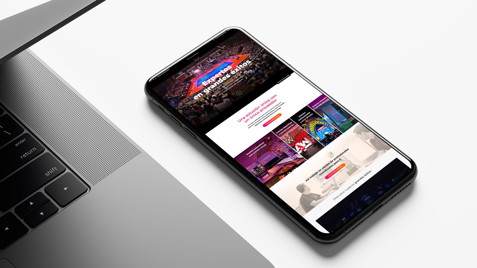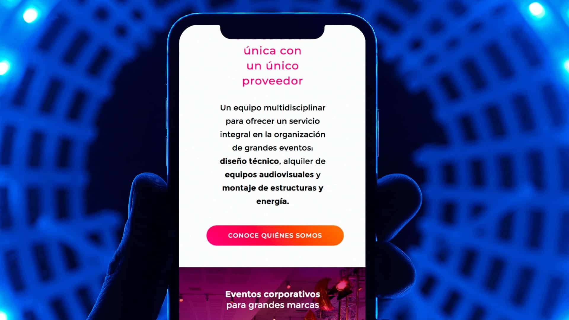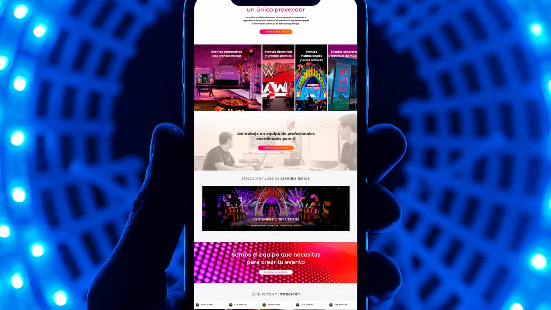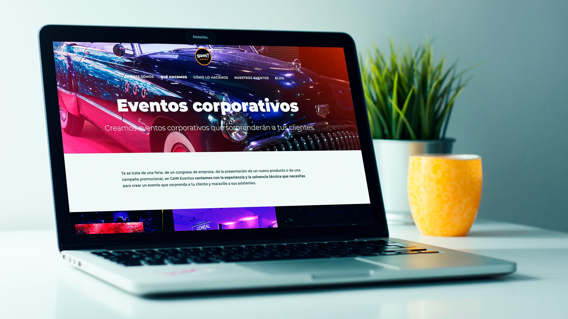 El objetivo de este proyecto era claro: crear una web para la división de GAM Eventos que mostrara la profesionalidad de un equipo integral que realiza todo el proceso de planificación, desarrollo y ejecución de grandes eventos.