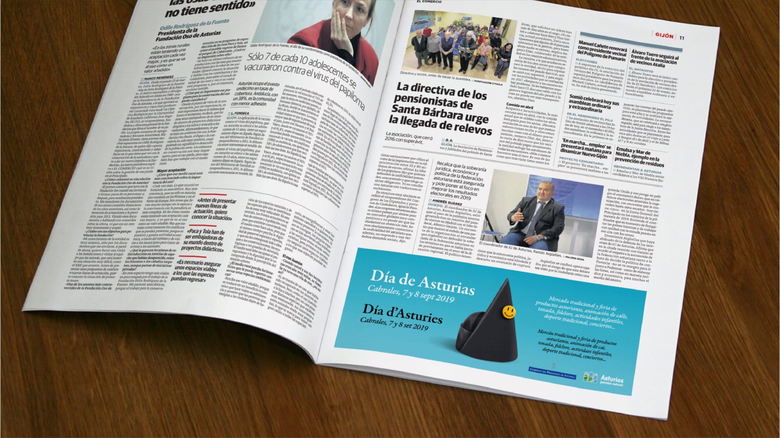Además del diseño, producción y coordinación de la parte gráfica y visual del evento, también realizamos piezas off y on protagonizadas por nuestra particular montera picona con su smile, contenta de celebrar el día de nuestra tierra.