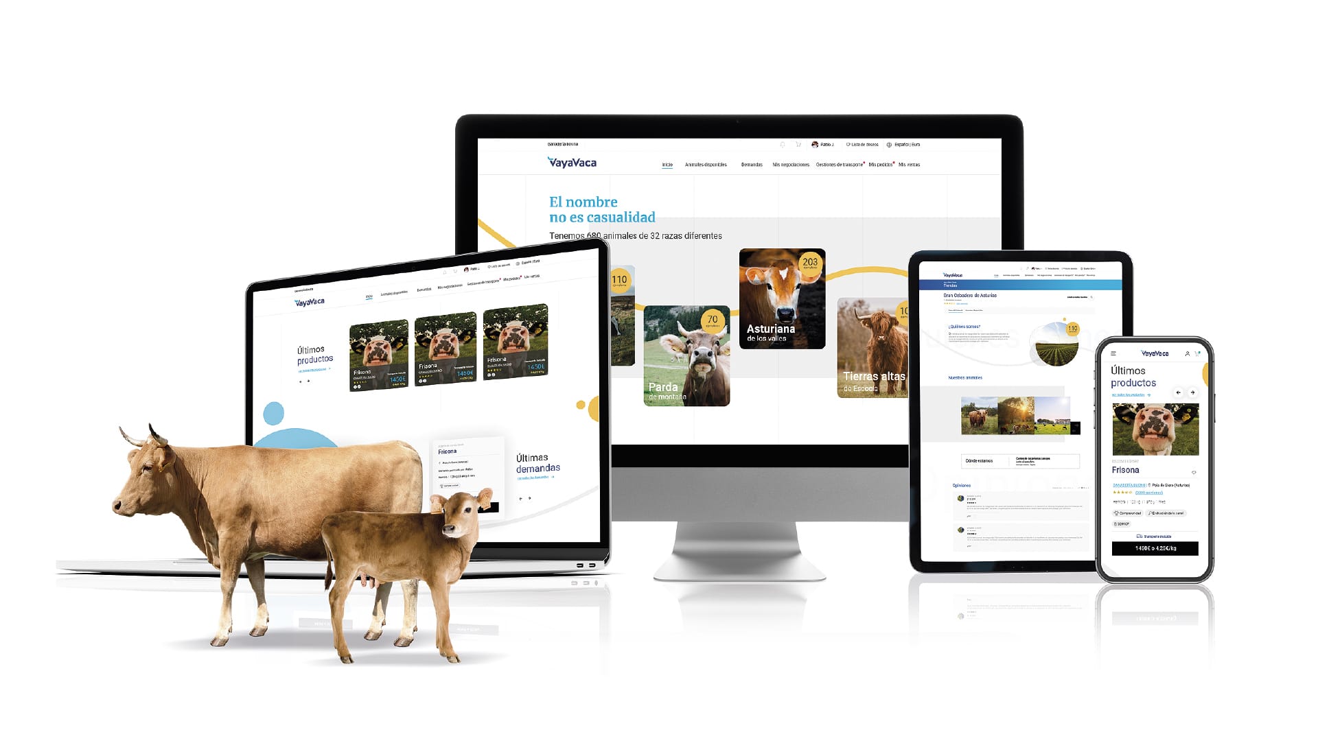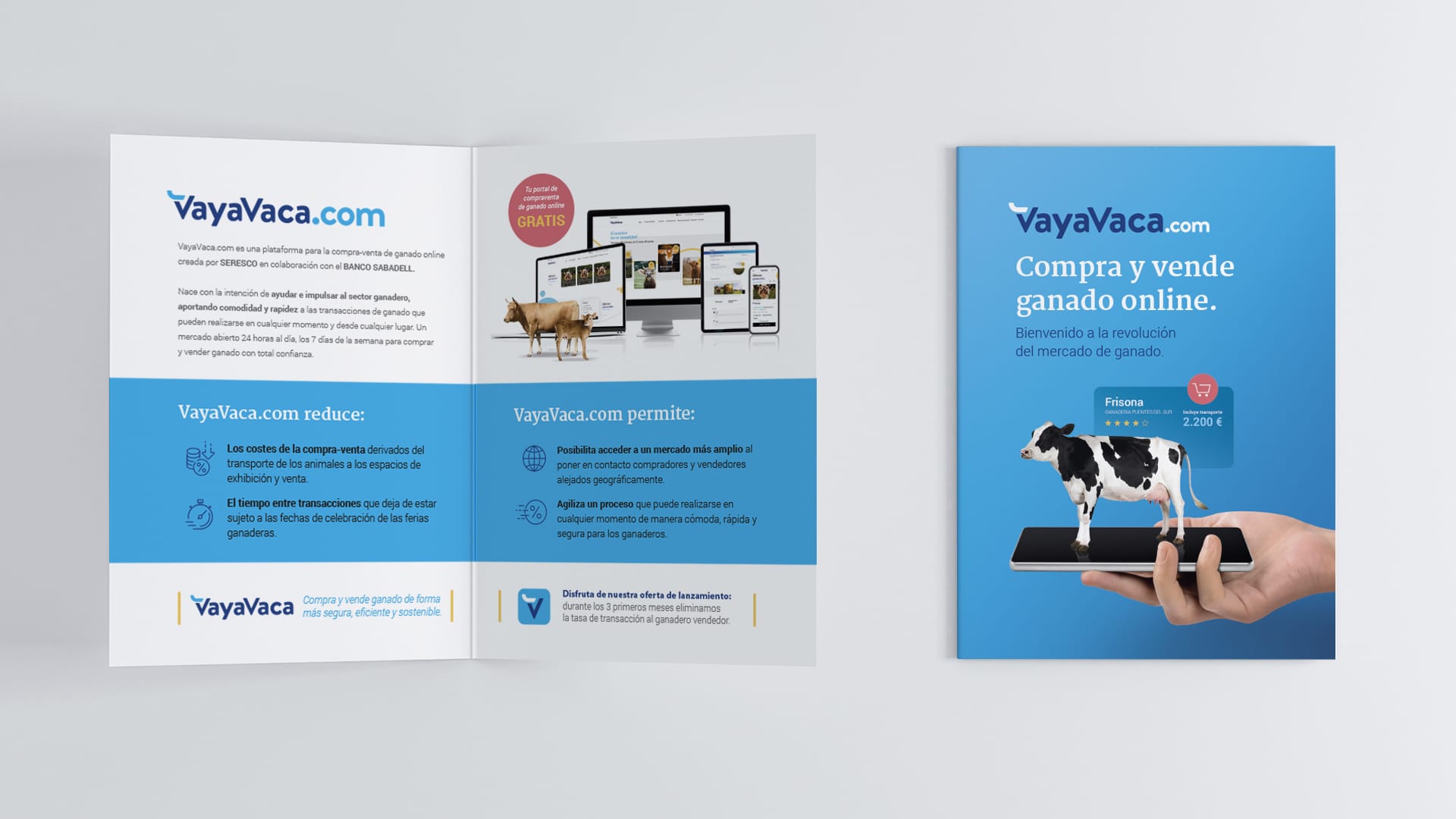 El primer paso fue la creación del naming VayaVaca. Elegimos un nombre asociado al ganado vacuno, corto, original y memorable, y a partir de ahí creamos una marca fresca y moderna, adaptable y versátil para que funcionase en todos los soportes necesarios, desde la plataforma digital a medios offline publicitarios.